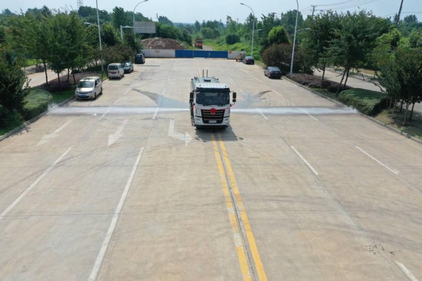 我公司產品標配前噴(鴨嘴)、后沖、后灑、側噴、后置式工作平臺,平臺上配置綠化水炮(可 360°旋轉,既可以調成柱狀,也可以調成霧狀,更可以調成直沖狀、大雨、中雨、小雨、毛毛雨),配備優(yōu)質大功率專用灑水泵(可自吸自排,可從河里或池塘抽水到罐體),取力器,雜物過濾網(wǎng),消防接口,自流球閥系統(tǒng)、取力器、球閥、濾網(wǎng)均為國家標準產品,主管道加粗,法蘭墊、法蘭盤加厚,大通徑球閥。整體具備性能優(yōu)良安全可靠、效率高、流量大、維修方便等特點。