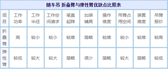 隨車吊 折疊臂與彈性直臂優缺點比照表工作半徑