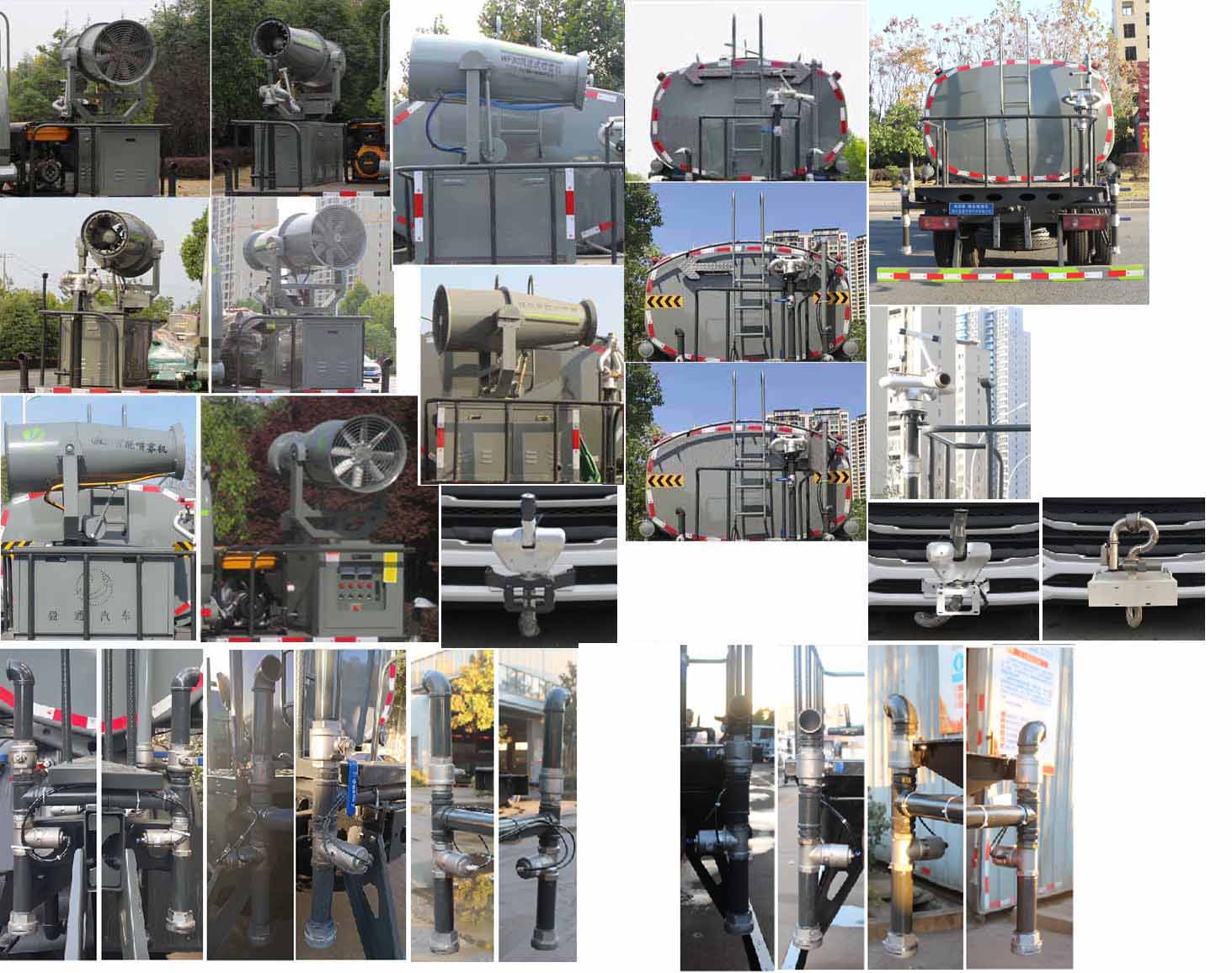 該車主要用于城鄉園林綠化,路面噴灑,除塵和降溫;主要裝置為水罐及噴灑裝置;隨底盤選裝駕駛室;罐體總容量:7.58立方米;罐體有效容積:7.22立方米;罐體外形尺寸(×長軸×短軸)(mm):4200×2000×1310;ABS型號/廠家:ABS型號及生產廠家為:3631010-C2000/東科克諾爾商用車制動系統(十堰)有限公司,J ABS/焦作博瑞克控制技術有限公司;側、后防護材料均為:Q235碳鋼,連接方式均為:螺栓連接,后部防護截面尺寸(mm):120×50,后部防護離地高度(mm):450.選裝噴灑裝置。選裝噴灑裝置樣式,選裝后部箭頭燈,選裝后部弧形噴灑裝置,選裝水炮支架位置,選裝后部樣式,選裝自動球閥安裝位置,選裝自動炮裝置樣式,前伸500mm,整車長度為7700(mm)。