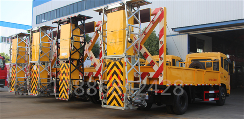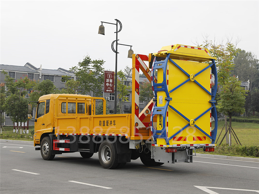 防撞緩沖車采用國六東風(fēng)天錦底盤。防撞緩沖模塊升降采用液壓控制,過程平穩(wěn)、安全、機(jī)械化作業(yè)程度高,操作方便。防撞緩沖模塊整體采用國產(chǎn)乾行達(dá)公司技術(shù)產(chǎn)品100E防撞緩沖模塊,太平洋保險(xiǎn)承保。適用于城市道路,郊區(qū)道路,高速公路,機(jī)場(chǎng)橋涵等場(chǎng)合。主要功用:置于道路施工作業(yè)人員和設(shè) 備后方,在發(fā)生追尾事故中充當(dāng)肇事車輛和施工作業(yè)人員或設(shè)備的緩沖區(qū)域,并且通過自身結(jié)構(gòu)變形吸收撞 擊能量,最大限度的降低施工人員或設(shè)備發(fā)生危險(xiǎn)的幾率,同時(shí)最大限度的降低肇事車輛及人員的危險(xiǎn)。