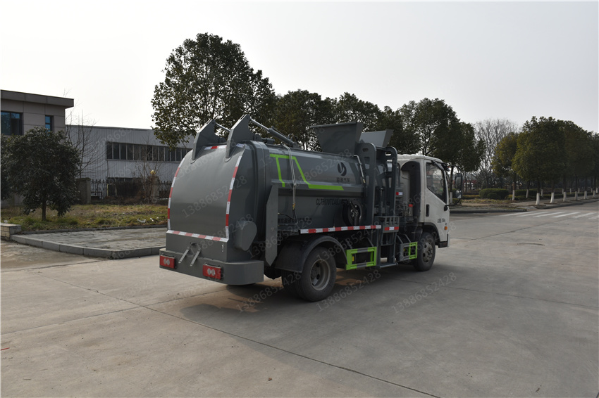 福田餐廚垃圾車,藍牌餐廚垃圾車,廚后垃圾車,餐廚掛桶式垃圾車,領航自裝卸垃圾車,該車用于餐廚垃圾收集清運,主要專用裝置為箱體;隨底盤選裝駕駛室;側防護材料均為:Q235碳鋼,連接方式為:螺栓連接,后部防護由專用裝置替代,后部離地高度440mm;ABS系統控制器型號為CM4XL-4S/4M,ABS系統控制器生產企業為廣州瑞立科密汽車電子股份有限公司.
