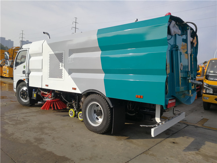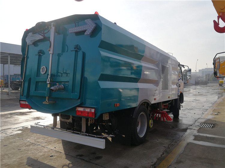 ● 中置兩盤掃(掃盤可單獨控制)+中置寬吸嘴+內置高壓主噴桿+左右高壓側噴桿(左右高壓側噴管可獨立控制)結構,實現路面的洗掃及吸塵。