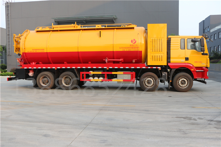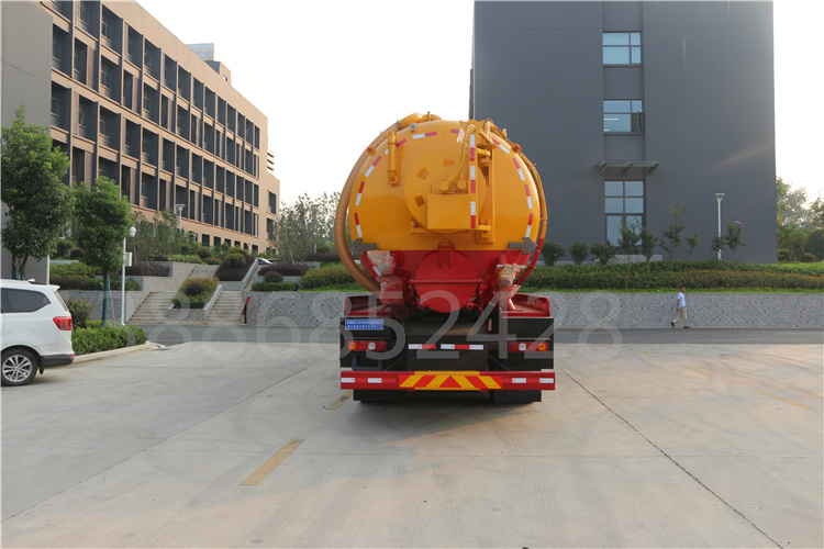 該車用于清洗吸污,主要專用裝置為罐體及清洗吸污裝置;罐體尺寸為(直段長×直徑)(mm):7100×2350(前部3150mm為清水罐,后部3950mm為污水罐);污水罐有效容積14.57立方米,介質(zhì):液態(tài)污物,密度:800千克/立方米;清水罐有效容積11.66立方米,介質(zhì):水,密度:1000千克/立方米,兩罐獨(dú)立,且不能同時(shí)滿載,清洗功能時(shí)用清水罐,吸污功能時(shí)用污水罐;隨底盤選裝駕駛室,選裝罐體側(cè)部樣式及后部樣式;卸料方式為舉升后卸式;側(cè)、后防護(hù)材料均為Q235,連接方式:螺栓連接。后防護(hù)截面尺寸(mm)200×60,下邊緣離地高480mm;ABS系統(tǒng)生產(chǎn)廠家及型號(hào)分別為:西安正昌電子股份有限公司(型號(hào):ZQFB-V),廣州瑞立科密汽車電子股份有限公司(CM4XL-4S/4M)。選裝前部不帶卷簾門保護(hù)箱。 |