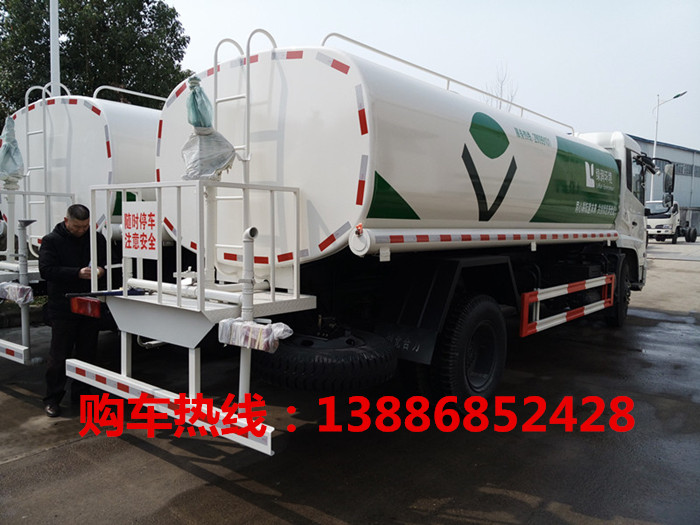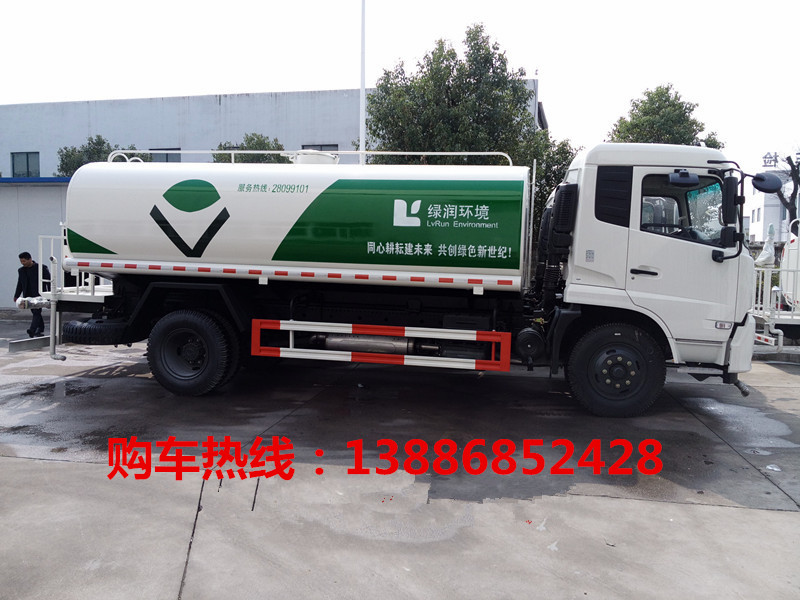 ★灑水車功能介紹:垂直吸程≥7米,灑水寬度≥14-16米,射程≥35-50米,揚程90米,引水時間﹤5min。灑水車前沖(噴)后灑,帶側(cè)噴,罐體后帶工作平臺,平臺上安裝綠化灑水炮,灑水炮可全方位旋轉(zhuǎn),可連續(xù)調(diào)成直沖狀、大雨、小雨、毛毛雨,帶安全護欄,配備大功率專用灑水泵,泵可自吸自排,安裝過濾網(wǎng),帶消防接口,可通過消防栓進水,帶自流閥,隨車選裝20米綠化卷盤,可噴灑農(nóng)藥,罐體油漆根據(jù)駕駛室顏色選配,也可根據(jù)客戶要求來漆涂,美觀漂亮耐用。