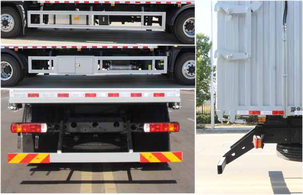 該車專用裝置為箱體、液壓控制系統(tǒng)等專用裝置,主要用于實現(xiàn)垃圾的裝載和轉(zhuǎn)運卸料作業(yè).卸料方式為后卸.車廂頂部封閉,不可開啟.側(cè)/后部防護裝置材料:Q235碳鋼,連接方式均為:螺栓連接;后防護截面尺寸120×60mm,后部防護離地高度(mm):460.ABS系統(tǒng)型號/生產(chǎn)企業(yè)對應關(guān)系:ABS-E/威伯科汽車控制系統(tǒng)(中國)有限公司;ABS/ASR-24V-4S/4M/東科克諾爾商用車制動系統(tǒng)(十堰)有限公司;CM4XL-4S/4M/廣州瑞立科密汽車電子股份有限公司;3550D-1010/東科克諾爾商用車制動系統(tǒng)(十堰)有限公司.該車安裝具有衛(wèi)星定位功能的行駛記錄儀.發(fā)動機型號與油耗值對應關(guān)系為(L/100km):B6.2NS6B210/26.00,B6.2NS6B230/26.91,F4.5NS6B190/24.40,D6.7NS6B230/26.80,F4.5NS6B220/24.40.該車可選裝直接供電式ETC車載裝置.僅采用底盤5750mm軸距改裝.隨底盤選裝限速裝置,限速89km/h.該車后軸僅采用鋼板彈簧懸架。 |