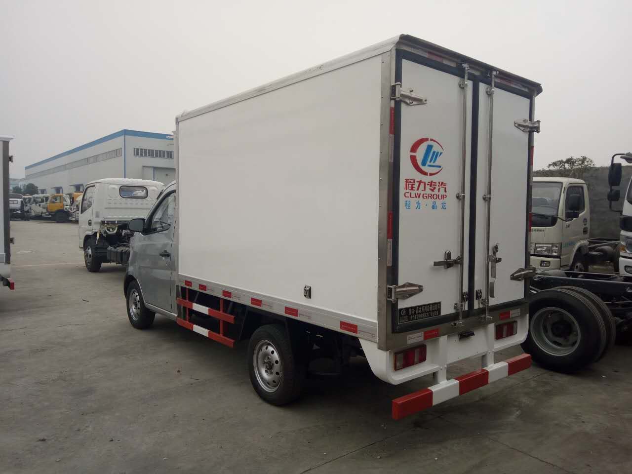 冷藏車廂體:采用國標A級聚氨酯保溫材料,厚度為8厘米,廂體內外采用玻璃鋼材質全包裹。不銹鋼鎖件。包角、包邊鋁合金型材。底盤采用高強度花紋鋁板定制。可選裝肉鉤導軌,和底部通風槽。