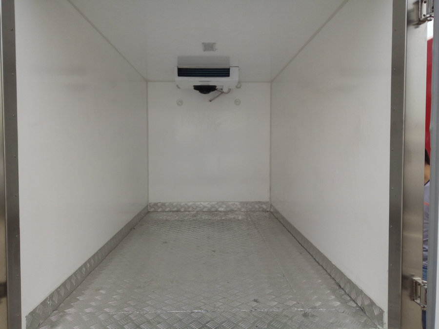 冷藏車廂體:采用國(guó)標(biāo)A級(jí)聚氨酯保溫材料,厚度為8厘米,廂體內(nèi)外采用玻璃鋼材質(zhì)全包裹。不銹鋼鎖件。包角、包邊鋁合金型材。底盤(pán)采用高強(qiáng)度花紋鋁板定制。可選裝肉鉤導(dǎo)軌,和底部通風(fēng)槽。