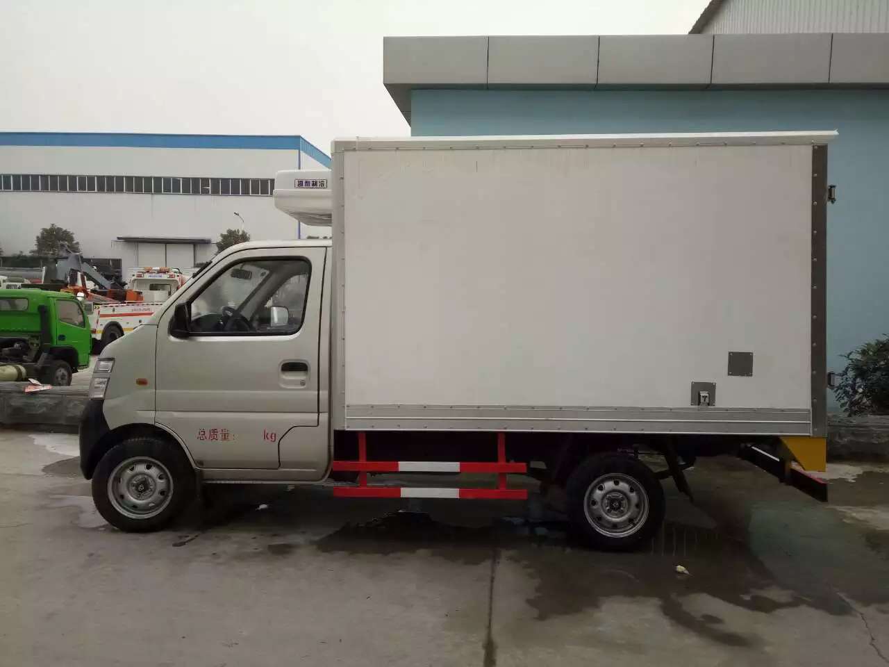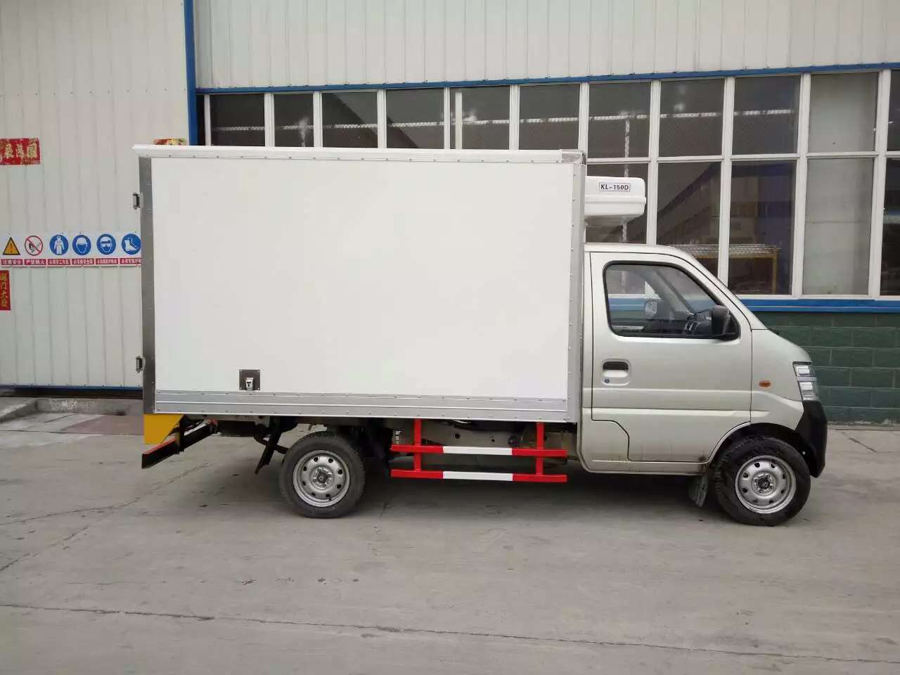 冷藏車廂體:采用國標A級聚氨酯保溫材料,厚度為8厘米,廂體內外采用玻璃鋼材質全包裹。不銹鋼鎖件。包角、包邊鋁合金型材。底盤采用高強度花紋鋁板定制。可選裝肉鉤導軌,和底部通風槽