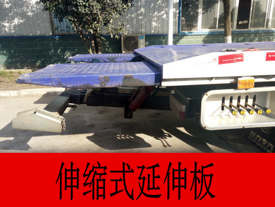 1.平板長度為:4.2米加上0.9米折疊板,寬均為2.35米,3P2A碳鋼板沖壓瓦楞型防滑板,平板帶有鎖止機(jī)構(gòu),平板及后拖臂均為雙側(cè)聯(lián)動(dòng)操作;