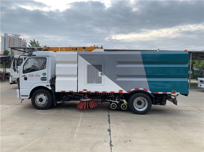 該洗掃車采用東風多利卡國六二類底盤改裝,加裝副發動機、風機、清水箱、垃圾箱、左右立掃、掃盤降塵系統、左右高壓側噴高、吸盤內置高壓主噴桿、氣動系統、液壓系統、專用裝置電控系統和副車架等改裝而成。