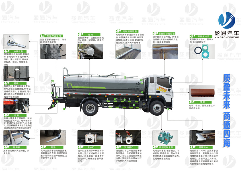 福田領(lǐng)航灑水車_領(lǐng)航ES7灑水車_福田玉柴245灑水車_湖北盈通專用汽車有限公司,ABS型號:CM4XL-4S/4M;ABS生產(chǎn)企業(yè):廣州瑞立科密汽車電子股份有限公司;選裝描述:隨底盤選裝駕駛室;所用材料材質(zhì)、連接方式以及后部防護裝置的主要尺寸參數(shù)(斷面尺寸和離地高度):側(cè)、后防護材料均為:Q235碳鋼,連接方式均為:螺栓連接,后部防護截面尺寸(mm):120×50,后部防護離地高度(mm):480;罐體有效容積(立方米)、罐體外形尺寸(mm):罐體有效容積:11.87立方米;罐體外形尺寸(長×長軸×短軸)(mm):5200×2300×1450;專用功能及裝置:該車主要用于城鄉(xiāng)園林綠化,路面噴灑,除塵和降溫;主要裝置為水罐及噴灑裝置; |