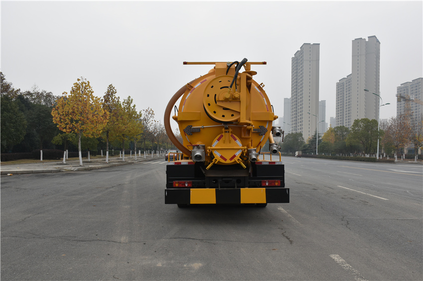 東風12方清洗吸污車,天錦12方疏通吸污車,管道疏通車,市政下水道清理車,高壓清洗吸污車,隨底盤選裝駕駛室,選裝罐體左右及后部樣式;該車主要用于下水道系統的清理和疏通工作;主要裝置為罐體及清洗吸污裝置;罐體尺寸為(總長×直徑)(mm):5400×1900(前部含封頭長2420mm為清水罐,后部含封頭長2980mm為污水罐);污水罐總容量:6.0立方米,污水罐有效容積:5.71立方米,介質:液態污物,清水罐總容量:4.8立方米,清水罐有效容積:4.57立方米,介質:;兩罐獨立,且不能同時滿載,清洗功能時用清水罐,吸污功能時用污水罐;側、后防護材料均為:Q235碳鋼,連接方式均為:螺栓連接,后部防護截面尺寸(mm):200×60,后部防護離地高度(mm):450;ABS型號/生產廠家:3631010-C2000/東科克諾爾商用車制動系統(十堰)有限公司,ABS 8/東科克諾爾商用車制動系統(十堰)有限公司,4460046450/威伯科汽車控制系統(中國)有限公司,J ABS/焦作博瑞克控制技術有限公司。卸料方式為舉升后卸式。選裝限速裝置,限速89.選裝后部出污口樣式。